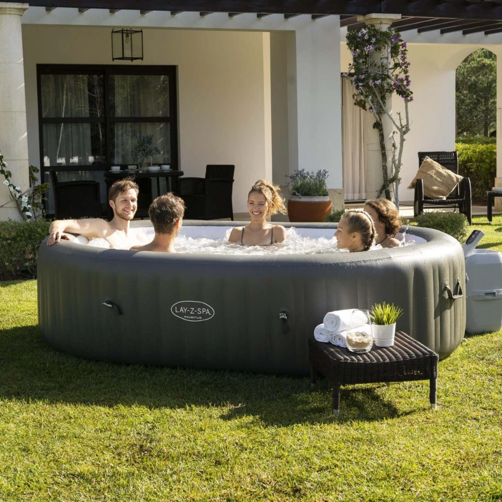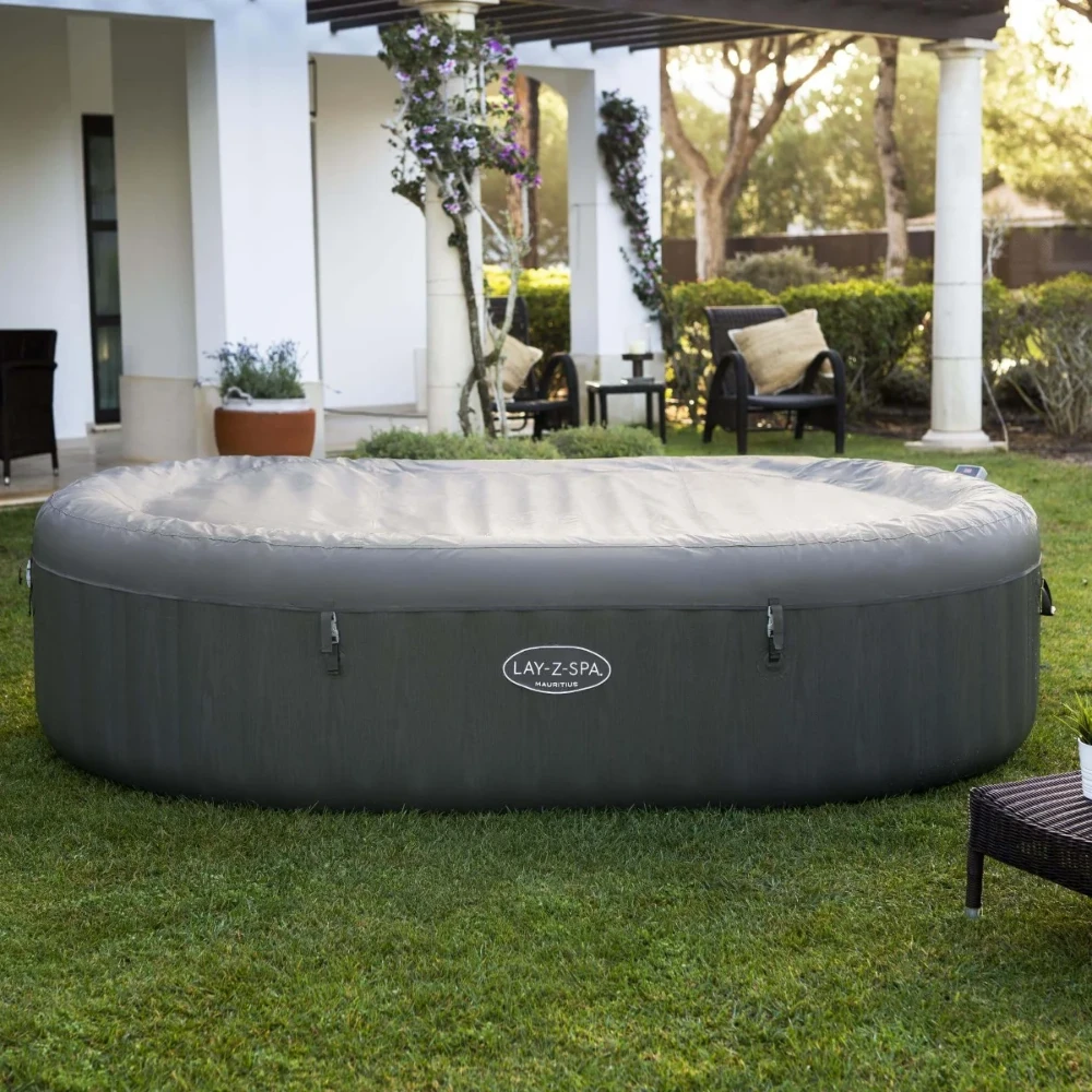 Relax and unwind at home and enjoy positive benefits to health and wellbeing with the Lay-Z-Spa Mauritius Smart AirJet™, a 7-person oval-shaped inflatable hot tub with WiFi.