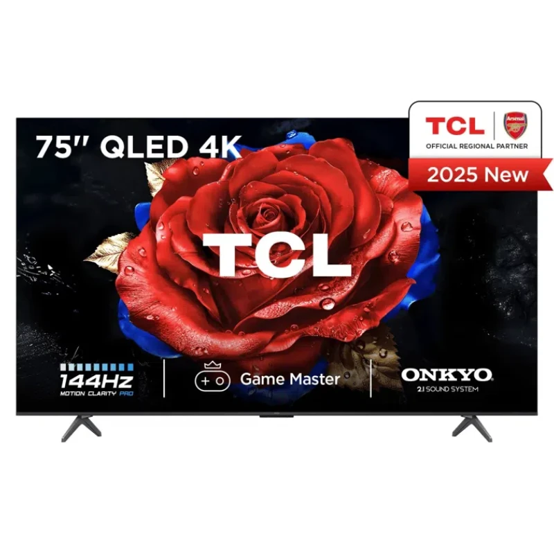 TCL 75″ T8C-UK 4K QLED HDR Smart TV, 4K Ultra HD, Google TV with 144Hz Motion Clarity